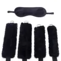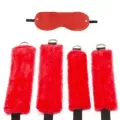 Kit com amarras reguláveis nos pulsos, tornozelos e nylon resistente nas cordas para imobilização total dos membros, que podem ficar atados aos quatro cantos da cama e venda para os olhos.