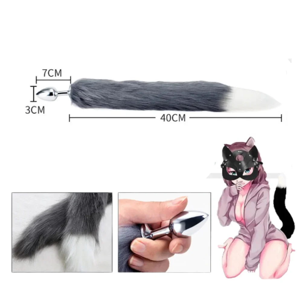 Plug anal tamanho P com cauda preta, projetado para inserção confortável e visual elegante; ideal para iniciantes e uso prolongado, com base segura e superfície lisa.